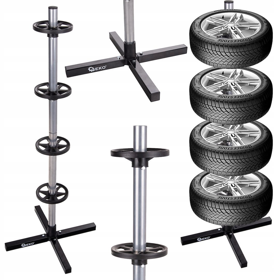 - Wymiary: Optymalne wymiary stojaka (46x46x103cm) zapewniają odpowiednią przestrzeń do przechowywania kół, jednocześnie zajmując minimalną ilość miejsca w garażu lub warsztacie.