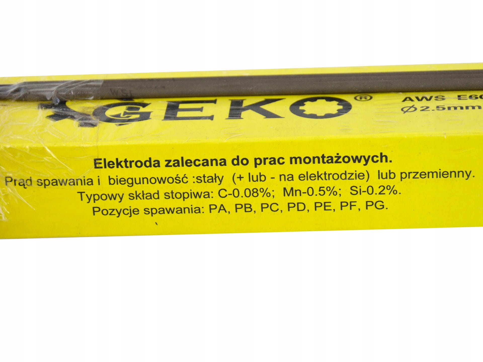 ✔️ Skład spoiwa elektrod zawiera 0,08% węgla (C), 0,5% manganu (Mn) i 0,2% krzemu (Si)