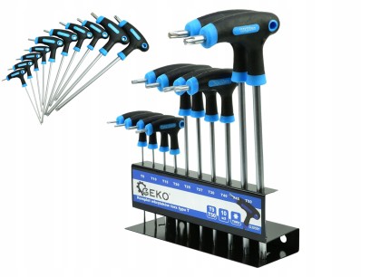 - wkrętaki w 10 najpopularniejszych rozmiarach: T9, T10, T15, T20, T25, T27, T30, T40, T45, T50