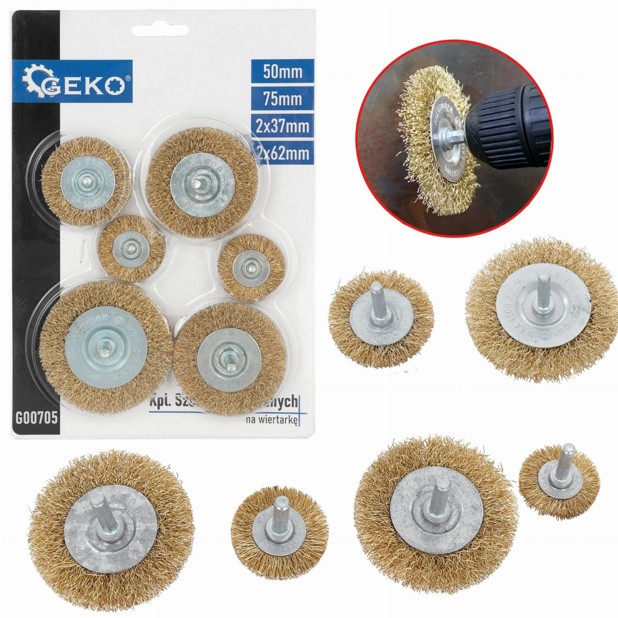 KOMPLET SZCZOTEK DRUCIANYCH NA WIERTARKE ZESTAW SZCZOTKA DRUCIANA 6 el.