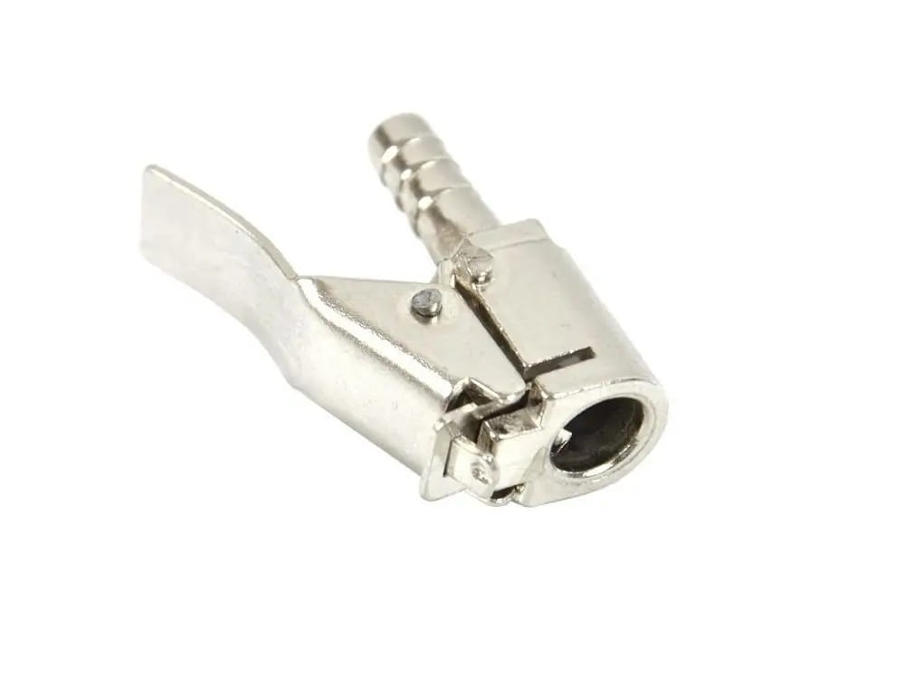 Metalowa końcówka do pompowania kół ze standardowym zaworem samochodowym.