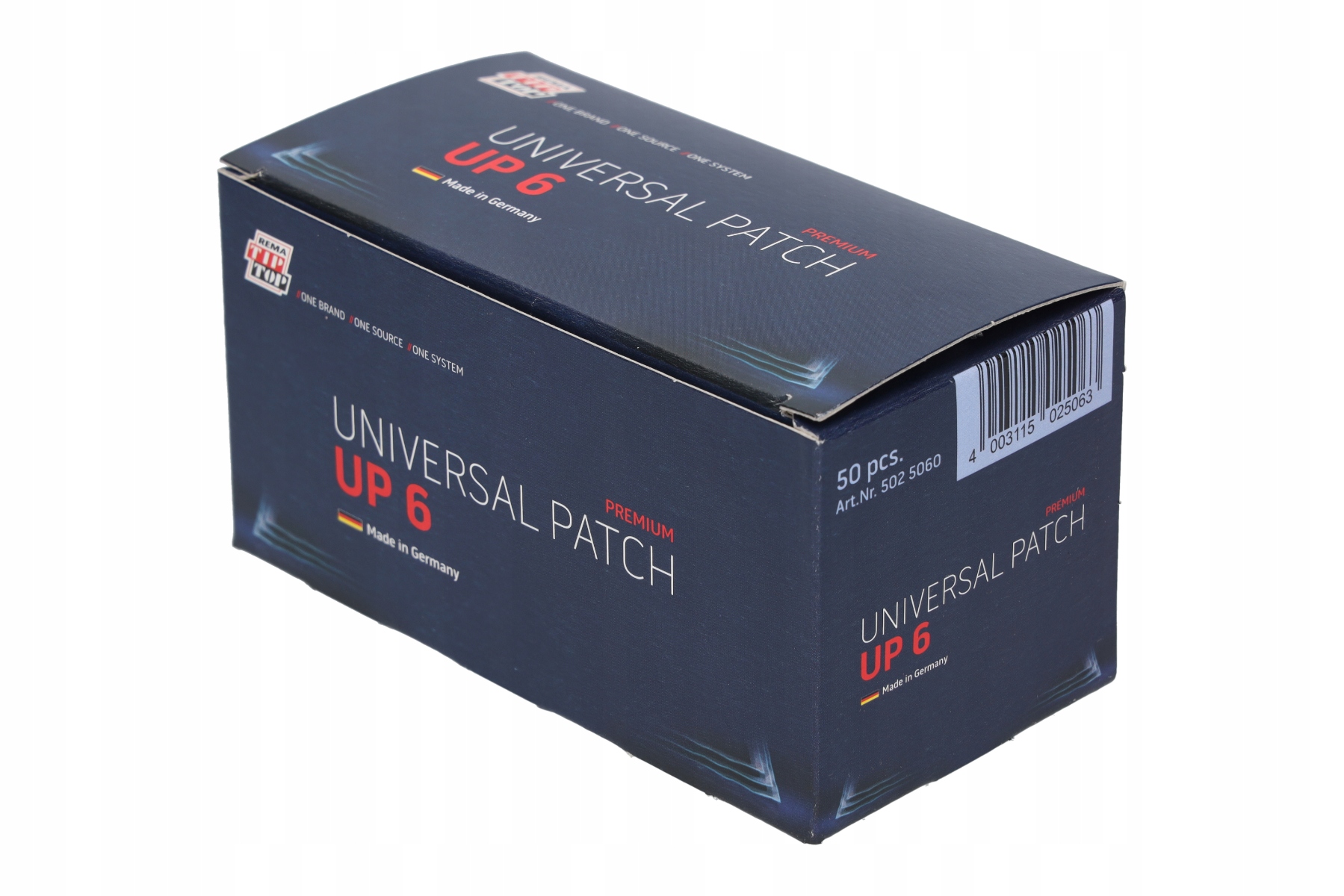 - ŁATKA UP 6, sprawdza się do napraw o średnicy max. 6 mm w oponach samochodów osobowych i ciężarowych w nast. zakresie: