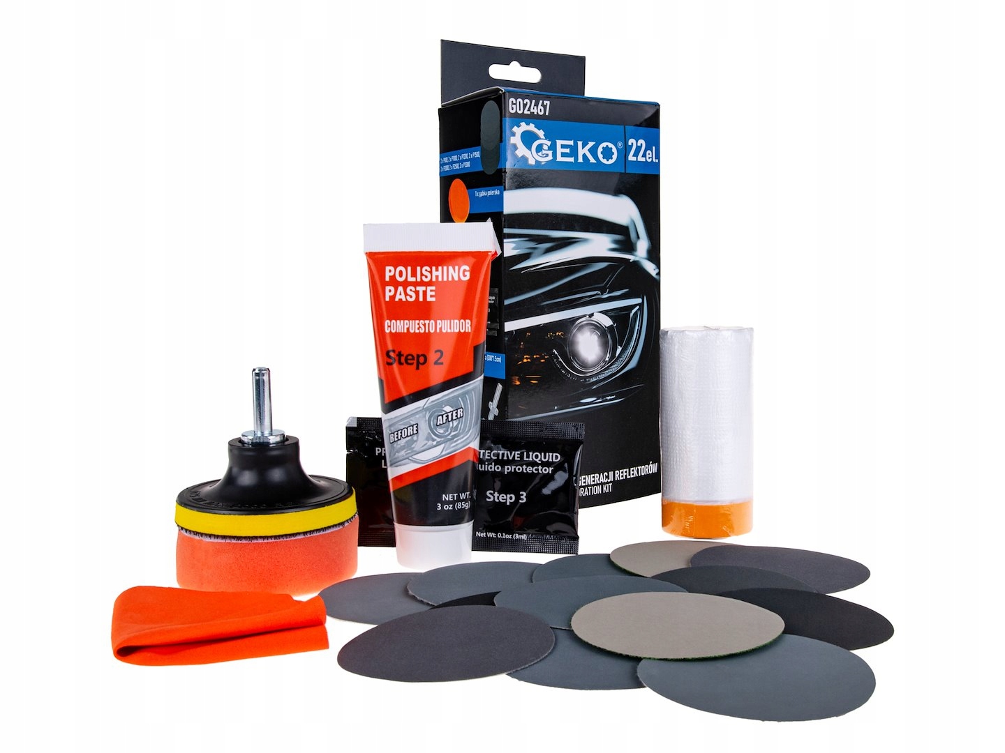 Z zestawem do regeneracji reflektorów marki Geko możesz przywrócić im blask i przejrzystość we własnym garażu! Ten kompletny zestaw zawiera wszystko, co potrzebne, aby krok po kroku oczyścić, wypolerować i zabezpieczyć reflektory, zapewniając profesjonalny efekt bez kosztownej wizyty w warsztacie.