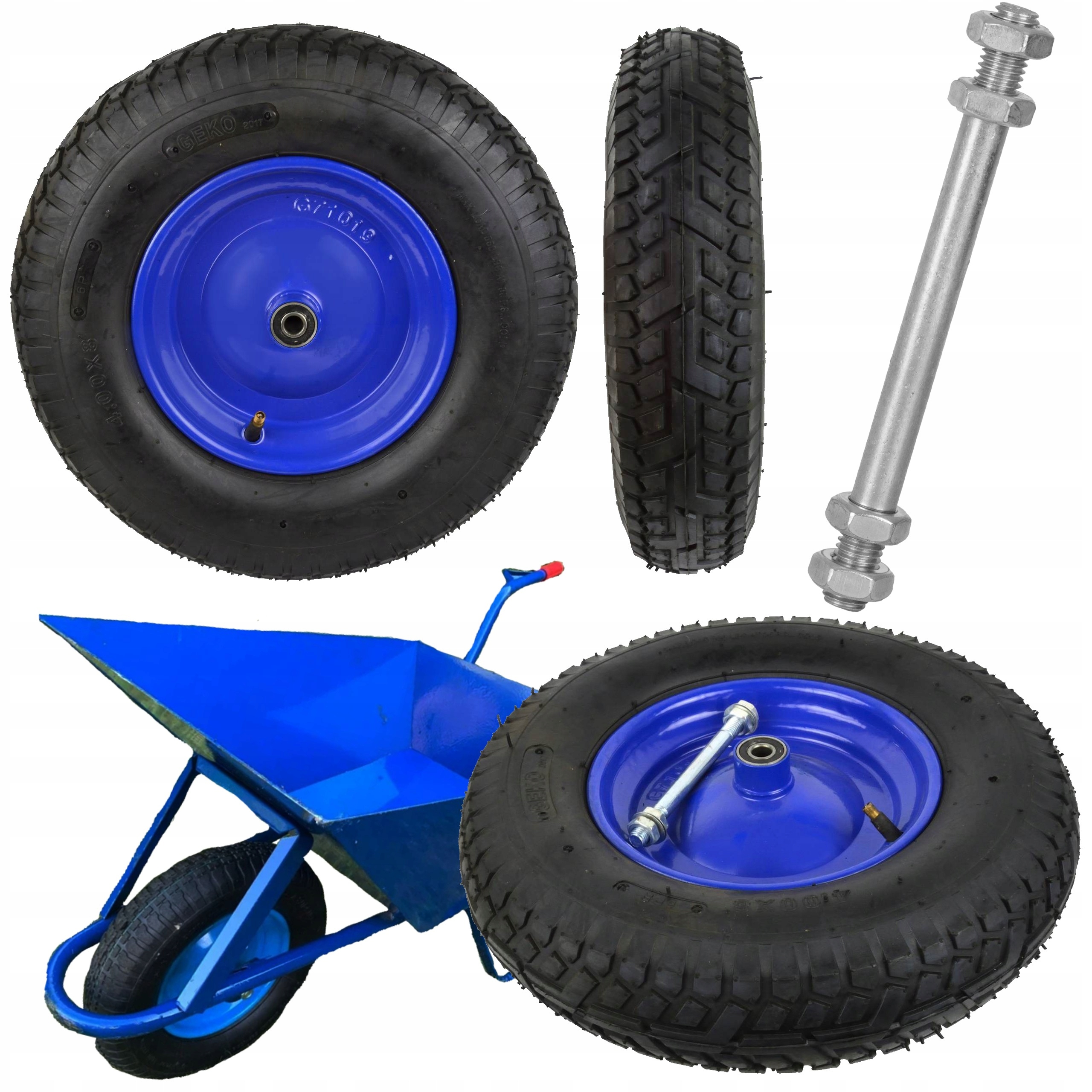 Pełne koło do taczki o rozmiarze 4.00-8 6PR + ośka