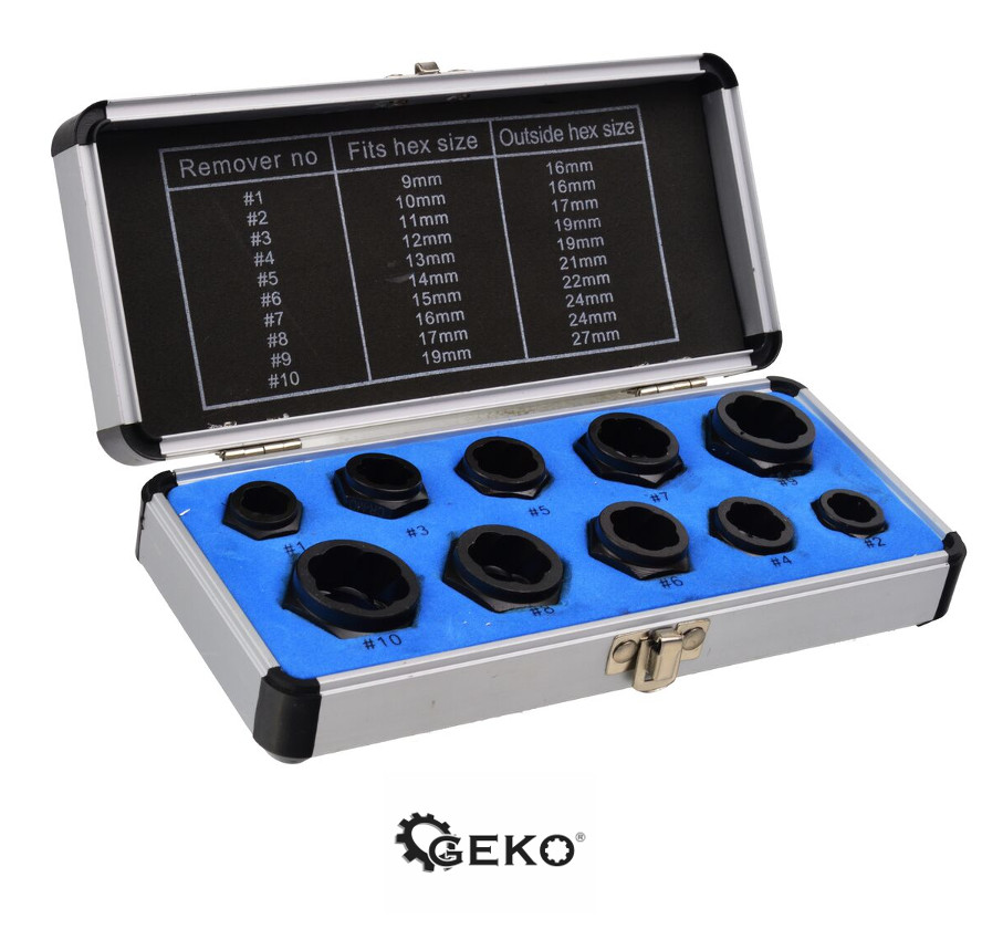 Nasadki do zniszczonych śrub zestaw wykrętaki GEKO 10 elementów 9-19mm