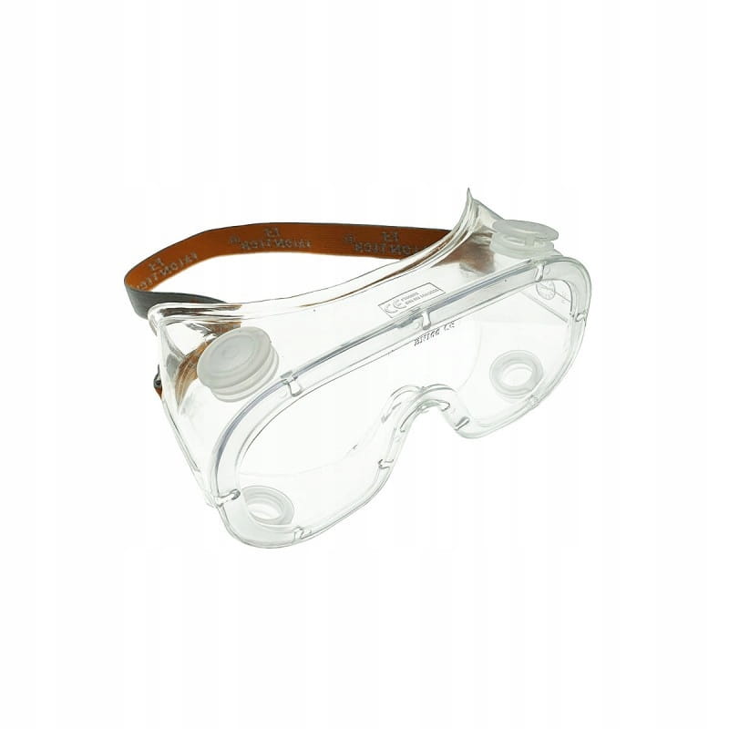 Wysokiej jakości przeciwodpryskowe gogle ochronne. Okulary przeznaczone do ochrony oczu przed opryskami ciał stałych powstających podczas obróbki, drewna, metali, materiałów ceramicznych, tworzyw sztucznych itp.