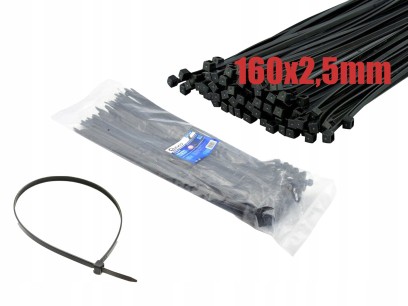 Opaski zaciskowe nylonowe czarne 160x2.5mm UV 100szt. Trytytki, Opaski kablowe