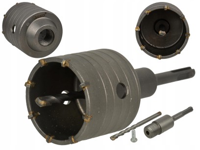 Otwornica / korona wiertarska wykonana z wysokiej jakości materiałów. Wieniec zębaty otwornicy wykonany został z węglików spiekanych. Korona wiertarska posiada adapter umożliwiający stosowanie jej w wiertarkach wyposażonych w uchwyt SDS Plus. Ponadto posiada również wiertło prowadzące, które umożliwia wykonanie precyzyjnego otworu.