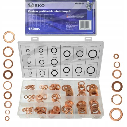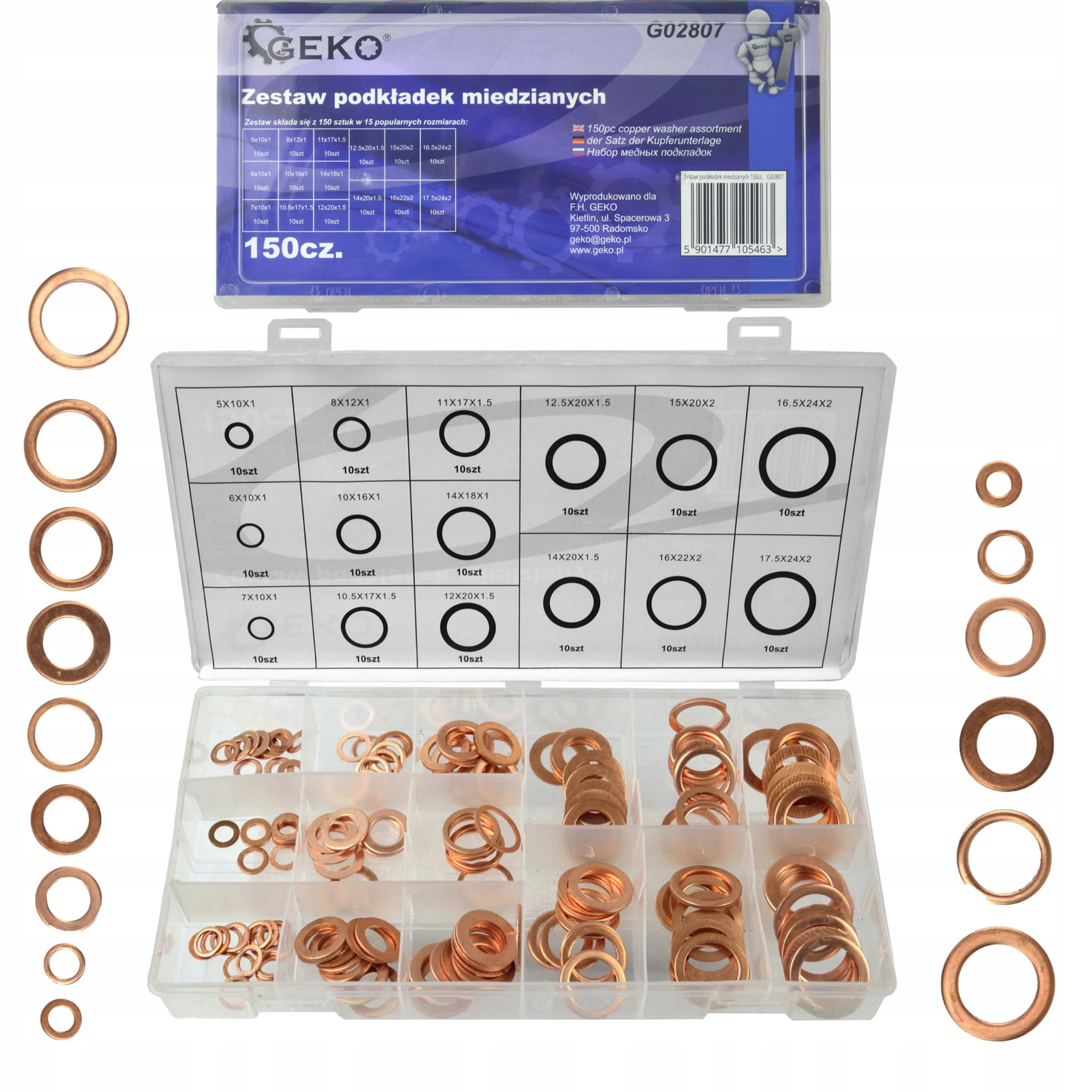 PODKŁADKI MIEDZIANE ZESTAW PODKŁADEK 150 SZT RÓŻNE