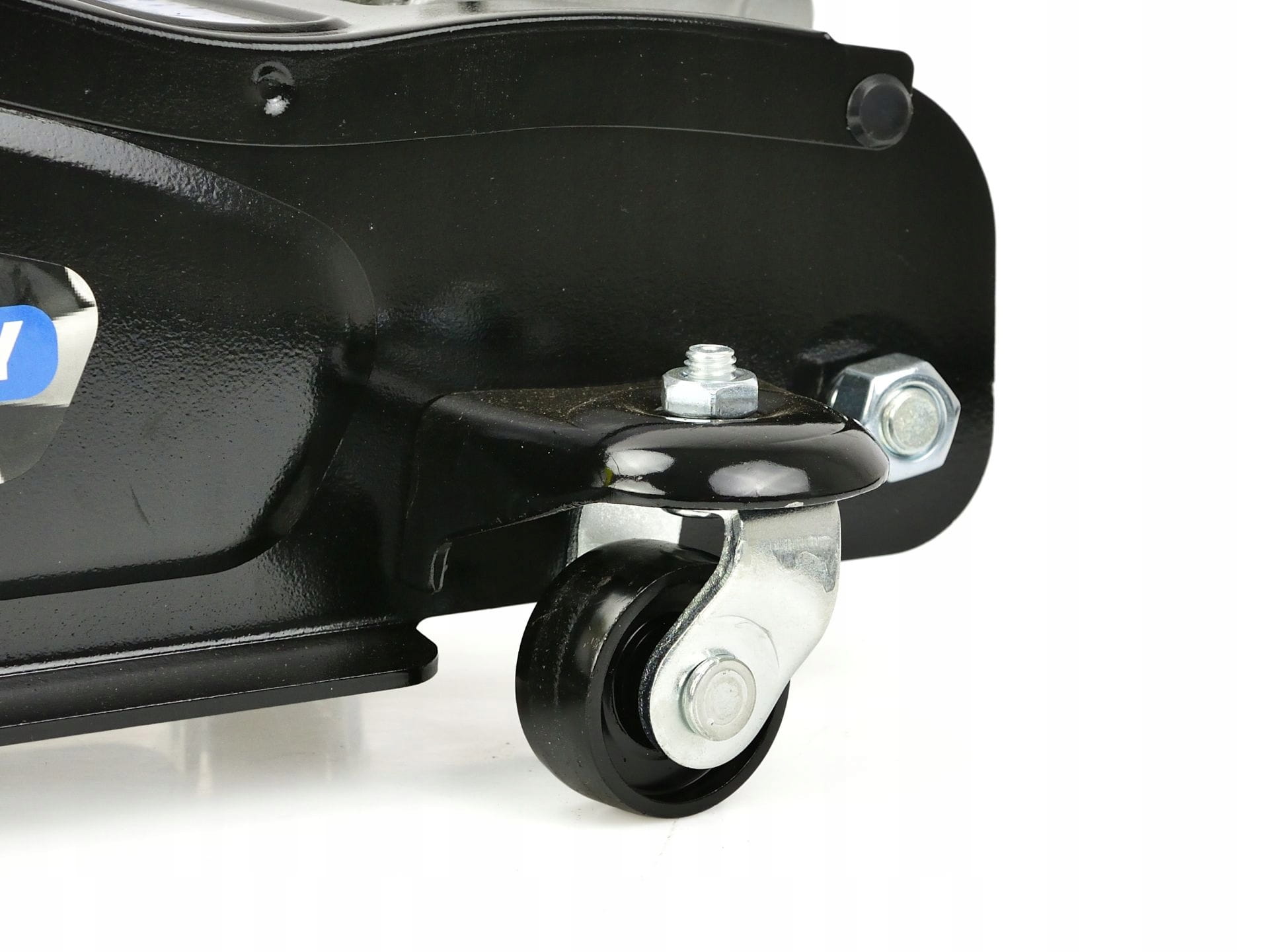 ✔️ Dzięki masywnym metalowym kołom przednim oraz skrętnym i łożyskowanym kołom tylnym, podnośnik jest bardzo mobilny i łatwy do manewrowania.