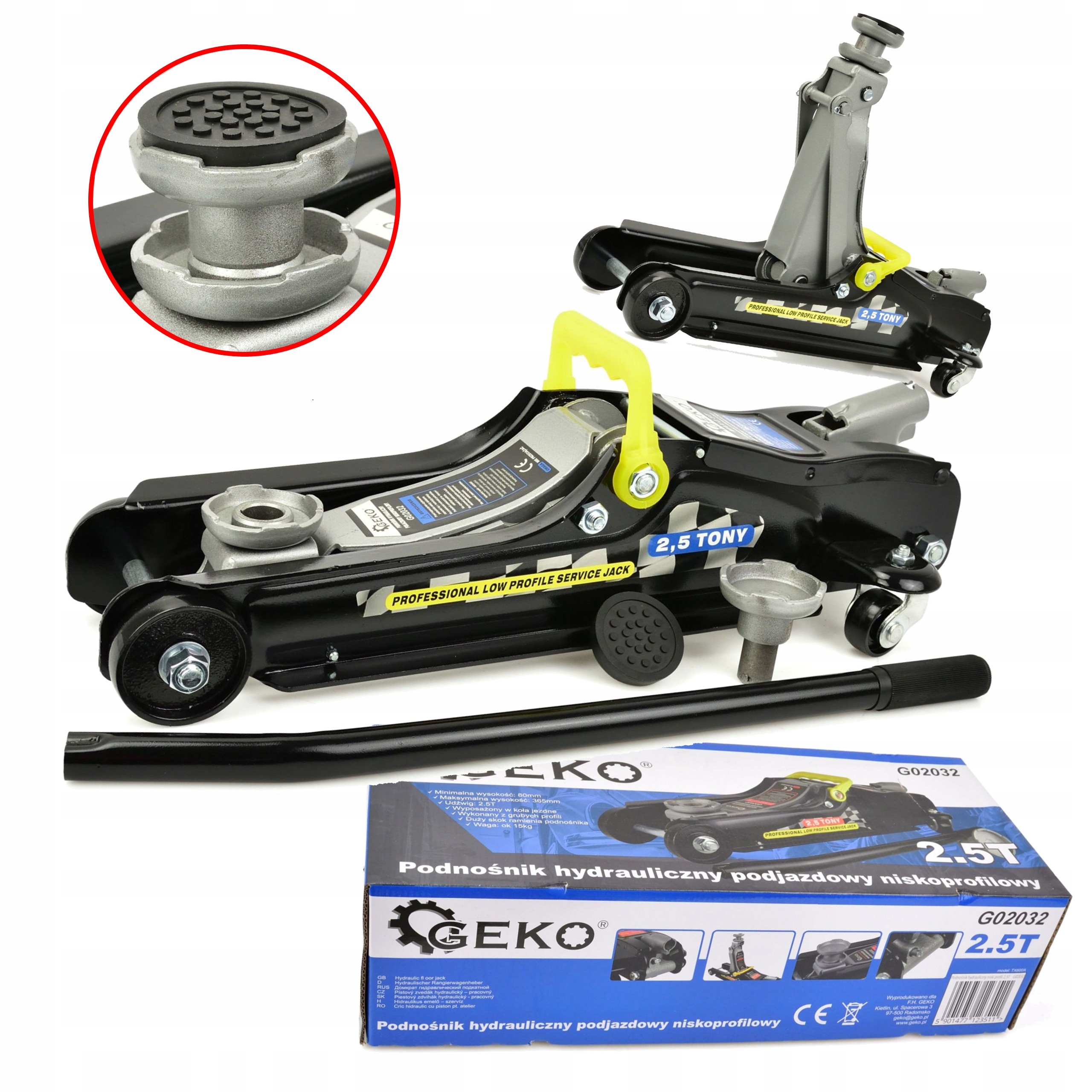 ✔️ Podnośnik hydrauliczny niskoprofilowy marki GEKO posiada maksymalny udźwig wynoszący 2500 kg, dzięki czemu jest w stanie podnieść niemal każdy samochód osobowy.