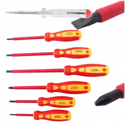 ZESTAW WKRĘTAKÓW IZOLOWANYCH DLA ELEKTRYKA 7 ELEMENTÓW PRÓBNIK NAPIĘCIA