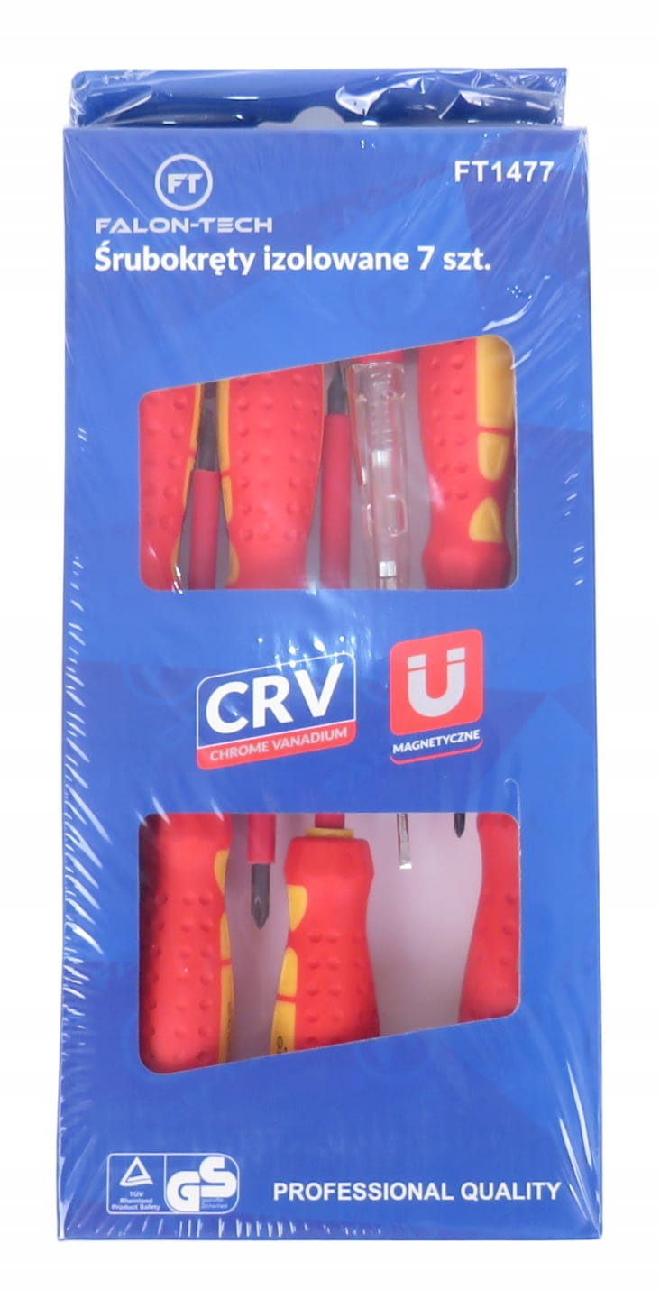 PROFESJONALNE ŚRUBOKRĘTY + PRÓBNIK NAPIĘCIA IZOLOWANE DLA ELEKTRYKA 7 EL.