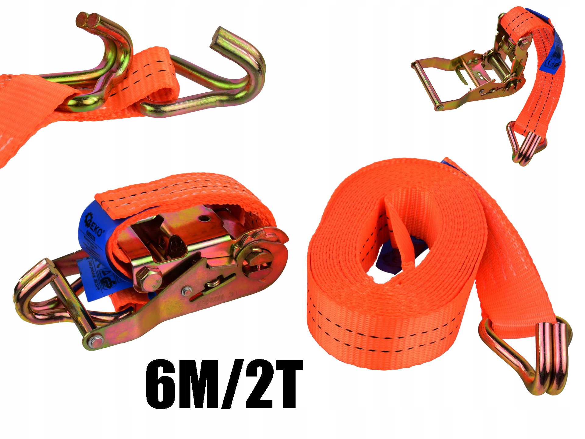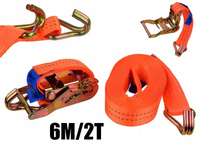 Wytrzymały pas transportowy z grzechotką, o długości 6m i uciągu 2t