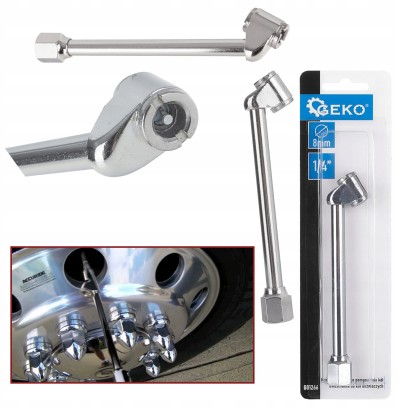 Końcówka długa do pompowania kół - uniwersalna i praktyczna. Ta końcówka z zaworem samochodowym o średnicy 8mm jest idealna dla kół bliźniaczych w samochodach ciężarowych i dostawczych. Dzięki temu, że jest dwustronna i otwarta, możesz pompować koła z obu stron bez problemu.
