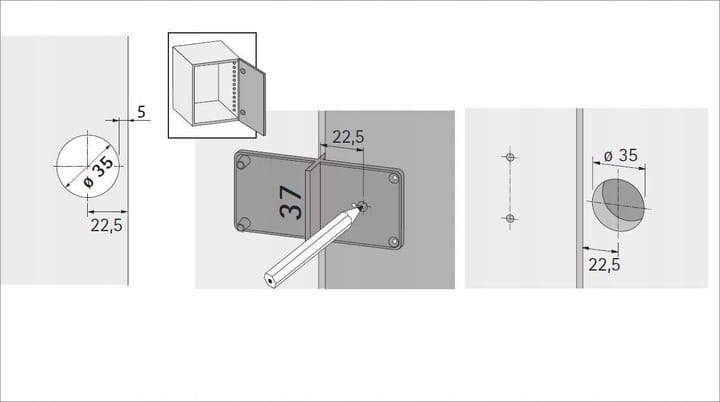 Montaż zawiasów o średnicy puszki fi 35mm odbywa się w następujący sposób:
