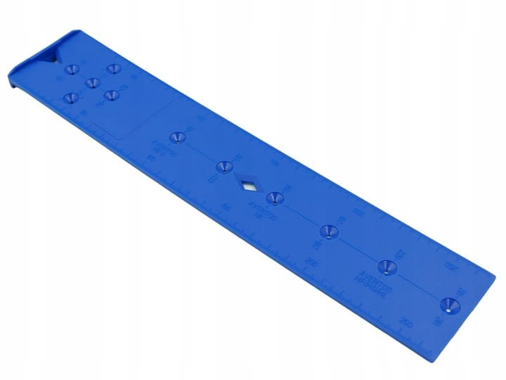 - Wymiary: Posiada długość 274 mm oraz szerokość 55 mm, co sprawia, że narzędzie jest odpowiednie do różnych wielkości mebli i umożliwia precyzyjne wiercenie otworów na odpowiednich odległościach.