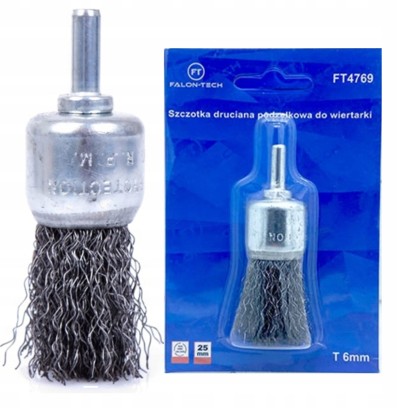 SZCZOTKA DRUCIANA STALOWA 25MM TRZPIEŃ 6mm DO USUWANIA RDZY Z METALU