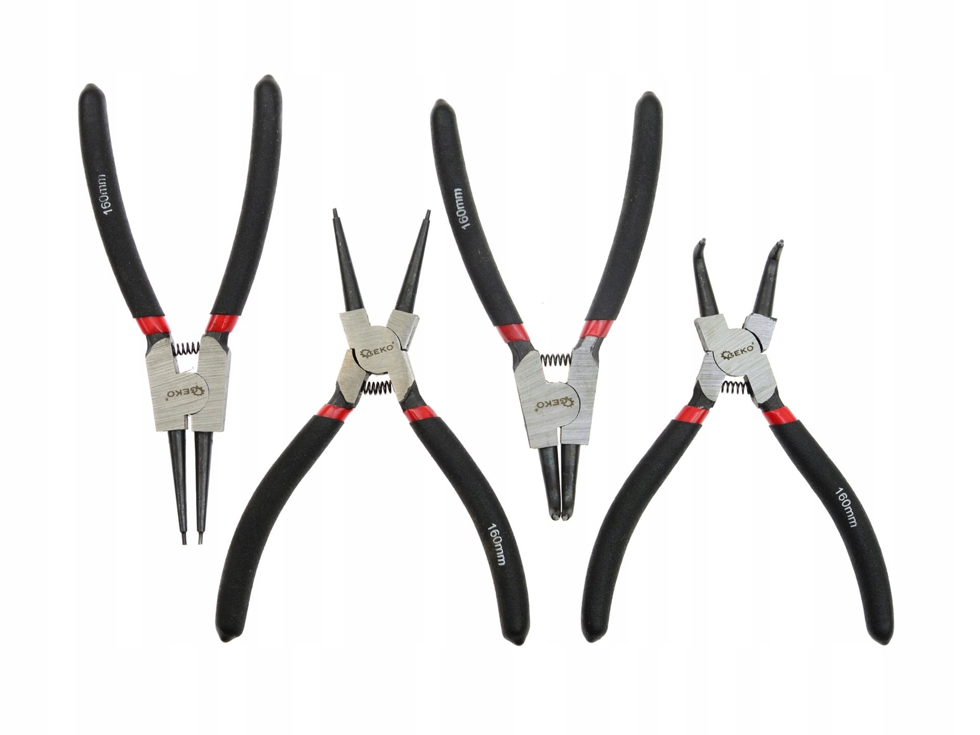 Zestaw czterech rodzajów szczypiec do pierścieni Segera zewnętrznych i wewnętrznych umieszczone w wygodnym etui.