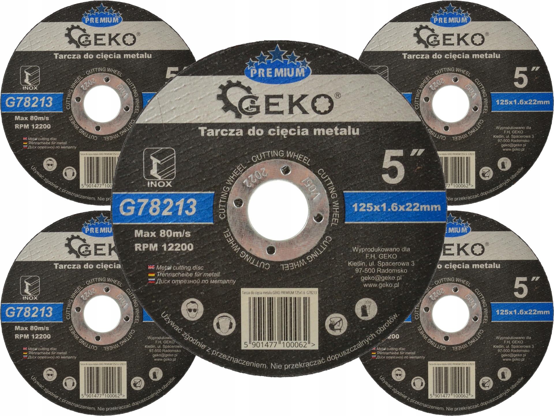 Tarcza do cięcia metalu INOX 5 SZTUK 125x1,6x22,23 GEKO Premium