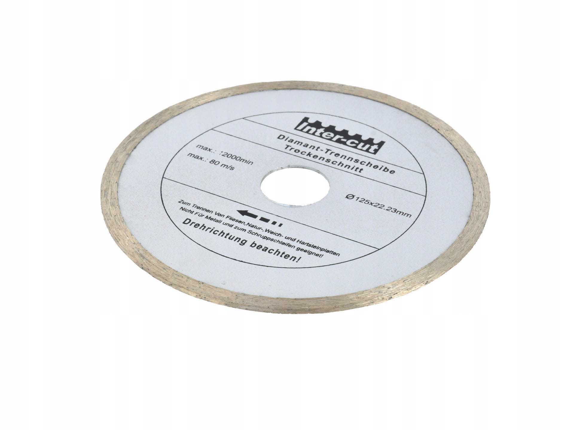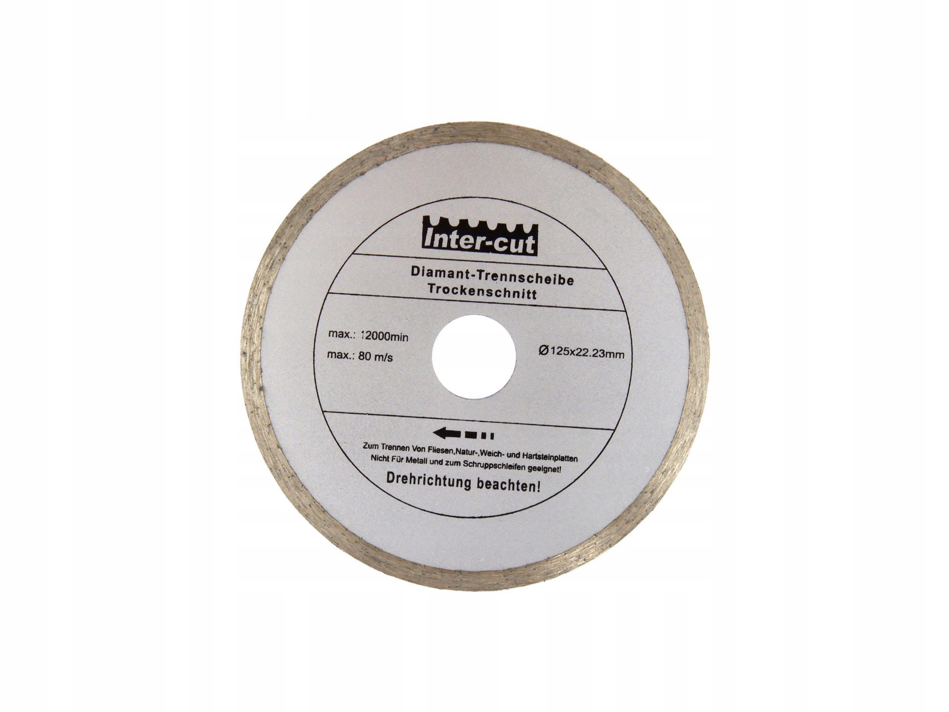 Wysokiej jakości tarcza diamentowa pełna 125mm przeznaczona do cięcia płytek ceramicznych, dachówki, płyt pilśniowych spajanych cementem.