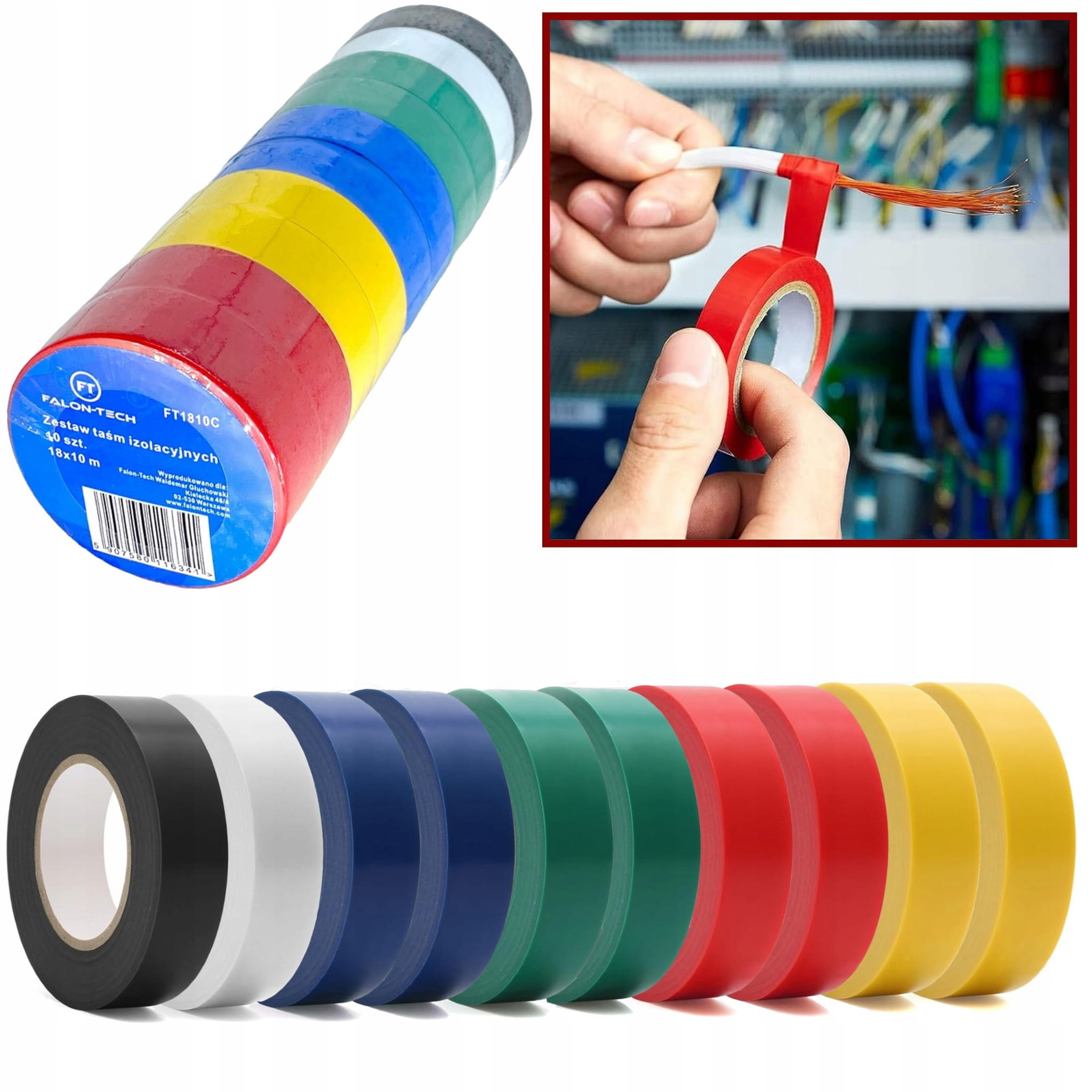 TAŚMA IZOLACYJNA WODOODPORNA KOLOROWA ZESTAW 10 SZTUK - 10m x 18mm