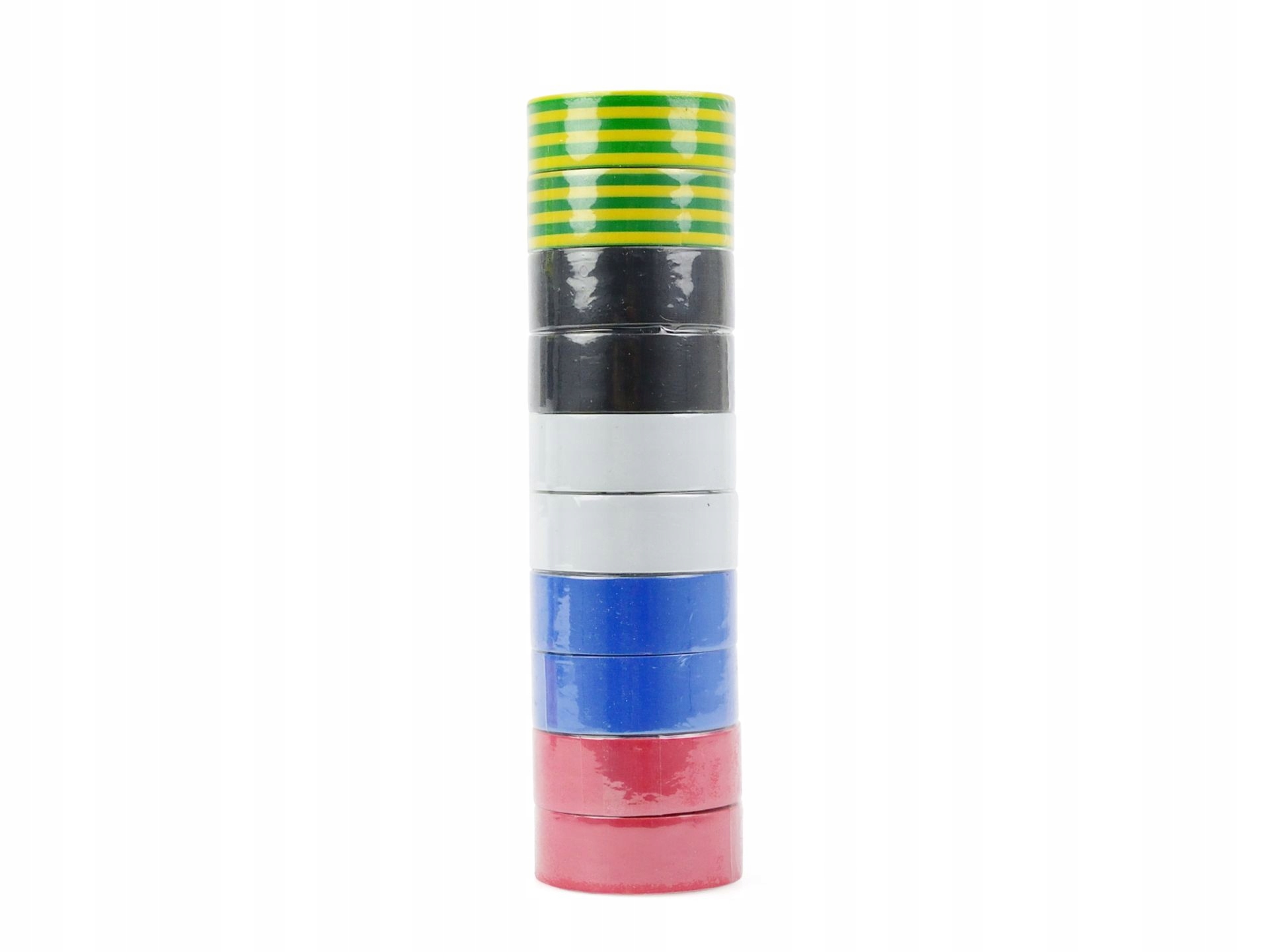 Zestaw 10 taśm izolacyjnych w różnych kolorach. Taśmy cechują się bardzo dobrymi właściwościami izolacyjnymi, wykonane przy użyciu PVC oraz kleju na bazie kauczuku. Charakteryzuje się dużą przylepnością do stali oraz wysoką elastycznością. W skład zestawu wchodzi 10 taśm izolacyjnych w 5 kolorach.