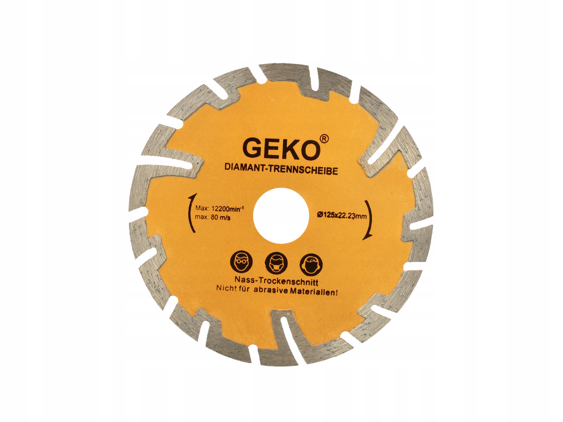 Tarcza diamentowa segmentowa ze szczelinami do cięcia na sucho materiałów budowlanych marki Geko, o wymiarach 125x22.2 mm .