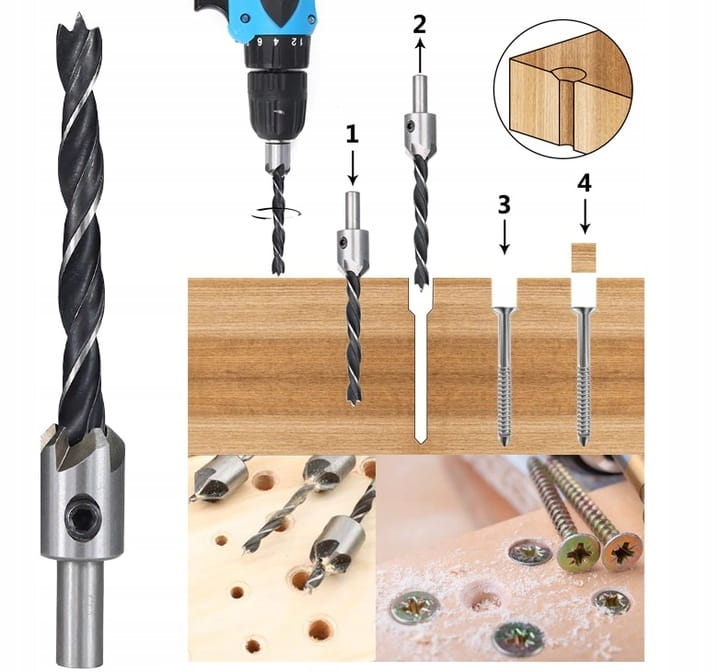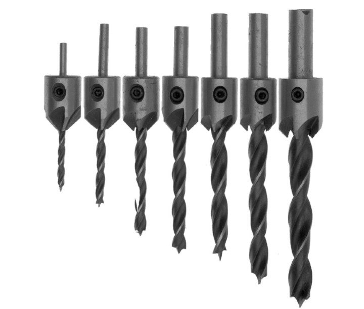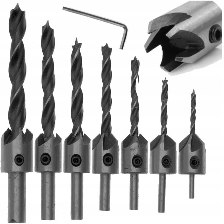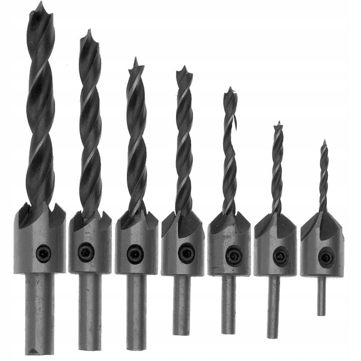 WIERTŁA DO DREWNA Z POGŁĘBIACZEM ZESTAW WIERTŁO + POGŁĘBIACZ 7 KOMPLETÓW
