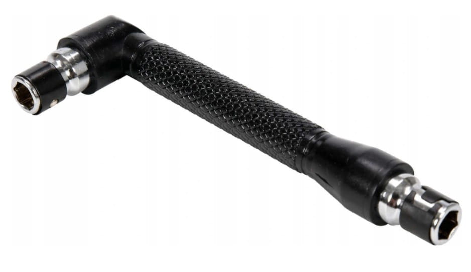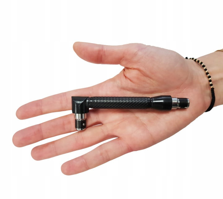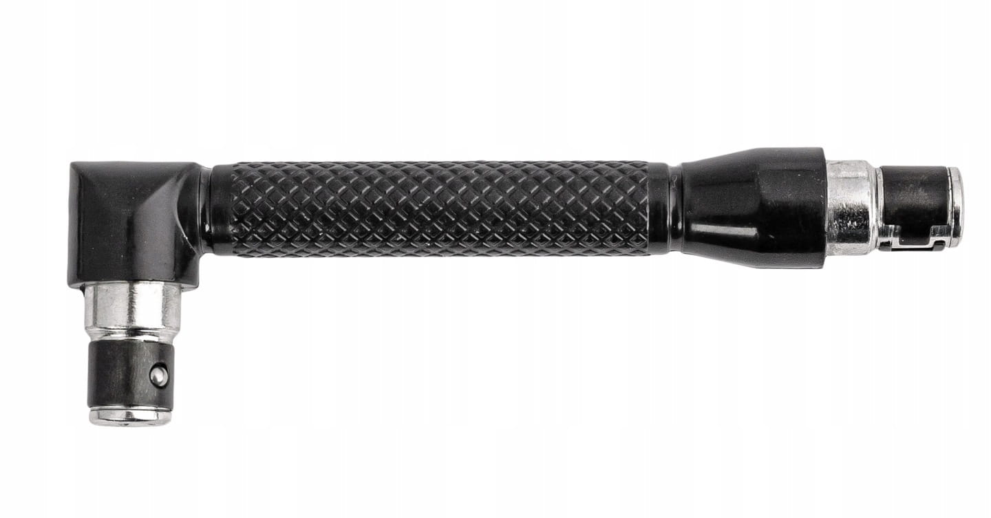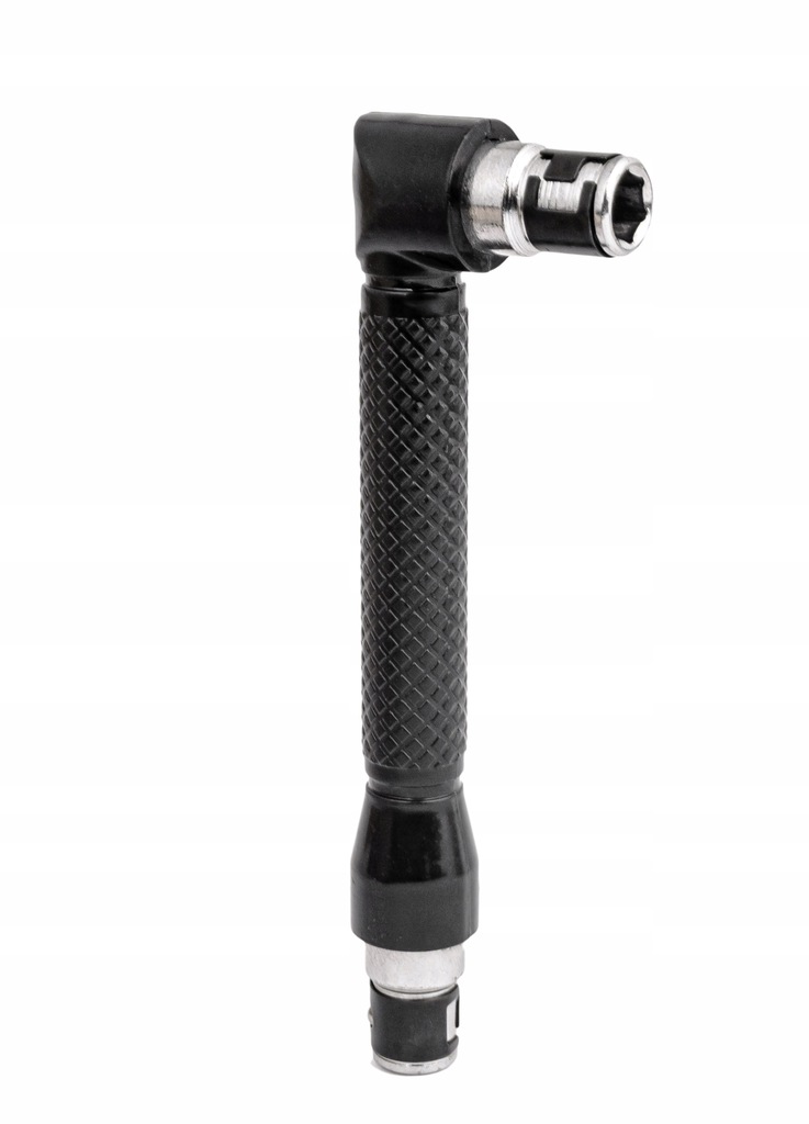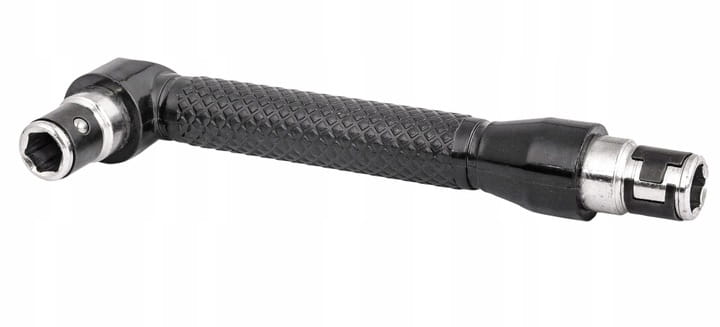 - DWUSTRONNE GNIAZDO – w zależności od potrzeb możemy go użyć w dwóch konfiguracjach, z krótszą lub dłuższą końcówką pod kątem 90 °. Pozwoli to na wygodne wkręcenie w trudno dostępnych miejscach.