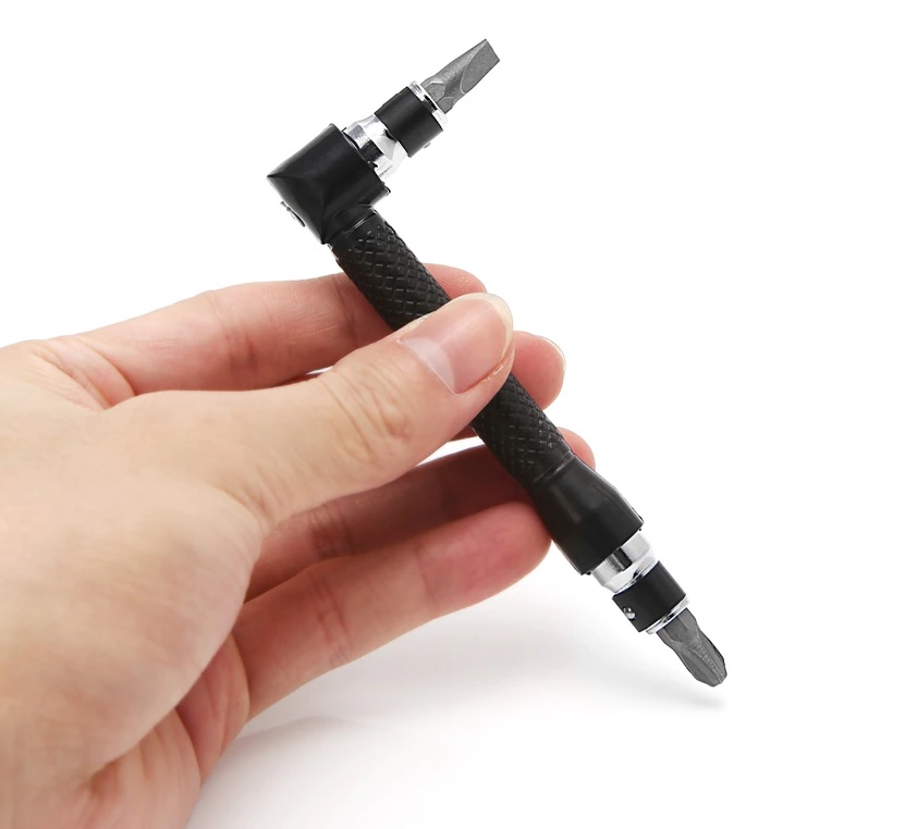 - Wkrętak do bitów 1/4" to narzędzie pozwalające przykręcić śrubę w miejscu, gdzie nie jest łatwo się dostać. Uchwyt do końcówek na bity posiada dwa gniazda i w zależności od potrzeb możemy go użyć z krótszą lub dłuższą końcówką pod kątem 90 °.
