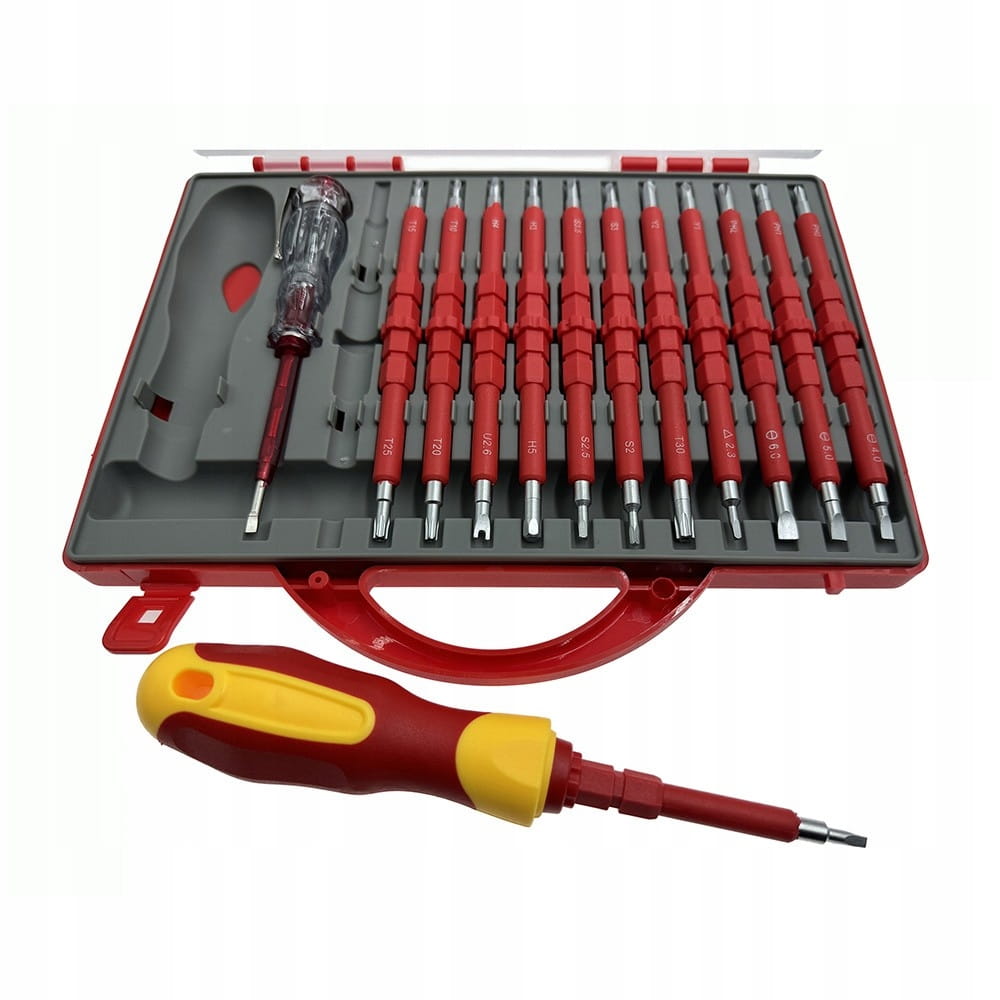 ZESTAW 12 IZOLOWANYCH ŚRUBOKRĘTÓW 1000V + UCHWYT + PRÓBNIK NAPIĘCIA