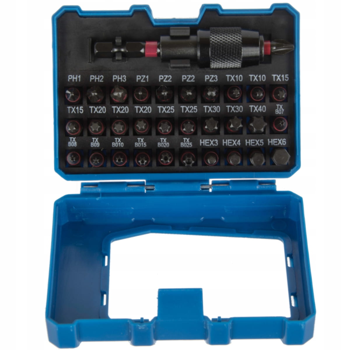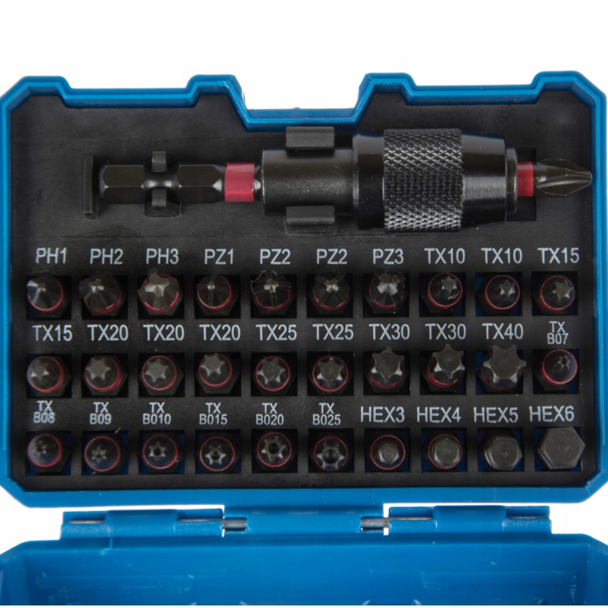 - 12 bitów Torx 25 mm: TX10 (x2), TX15 (x2), TX20 (x3), TX25 (x2), TX30 (x2), TX40