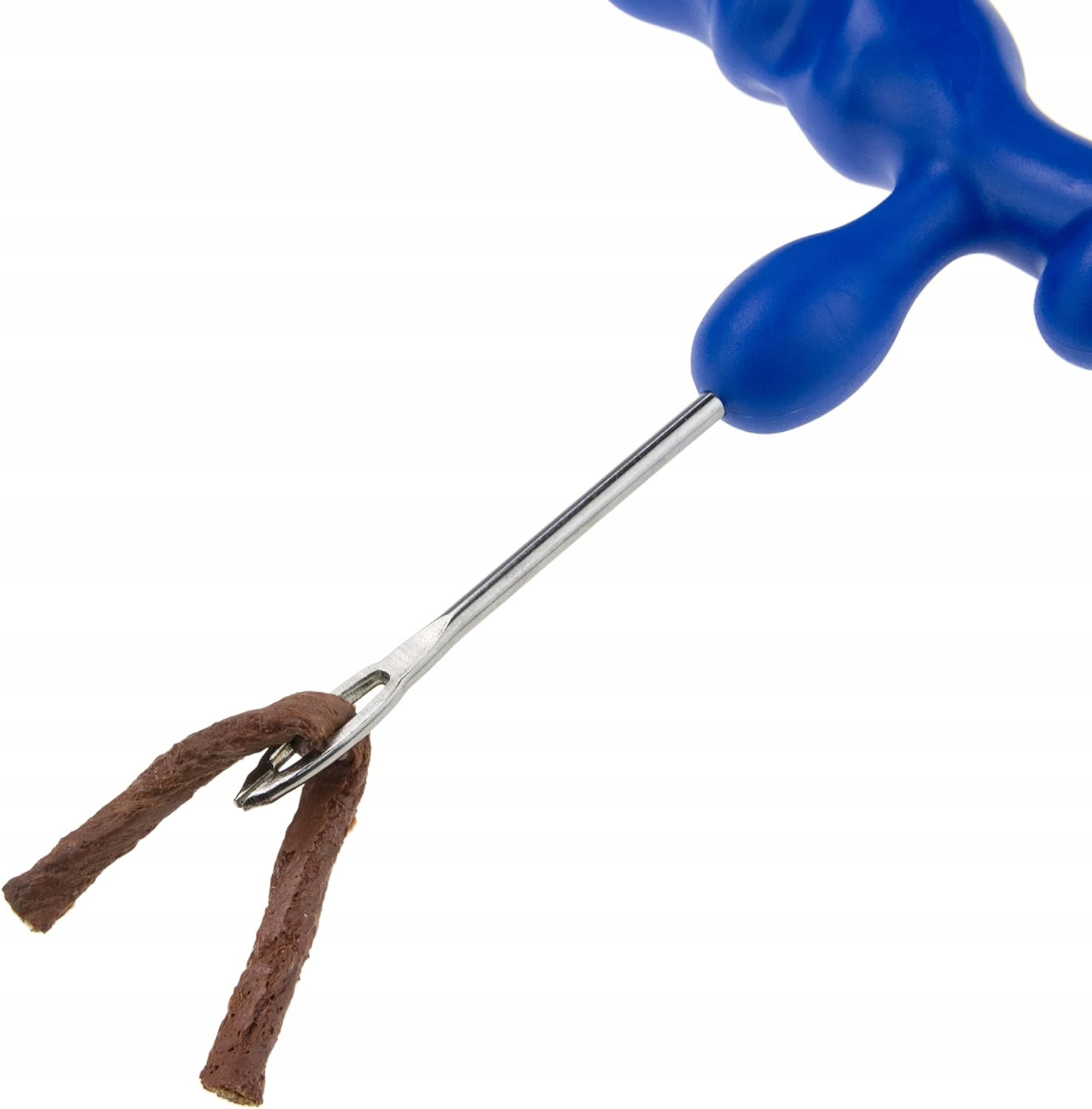 - Na szydło nawlecz sznur butylowy, następnie szybkim ruchem wepchnij szydło w miejsce przebicia opony, czynność powtórz (sznur powinien wystawać ok 1 cm nad bieżnik opony)