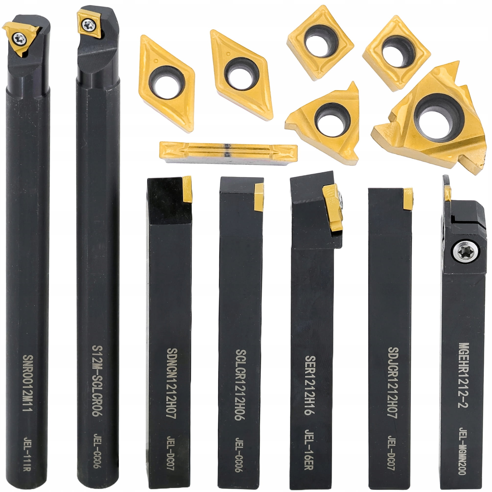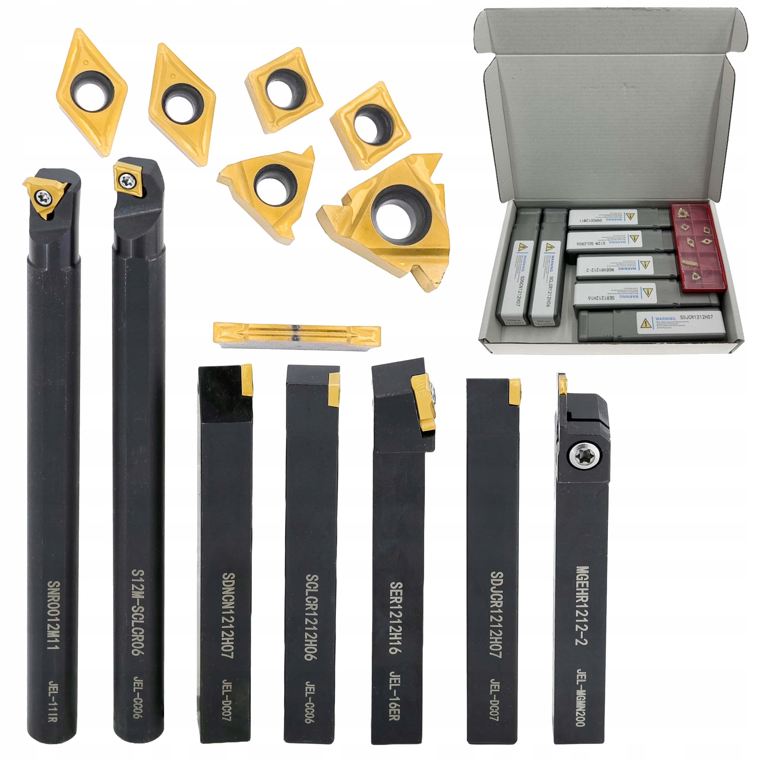 ZESTAW NOŻY TOKARSKICH SKŁADANYCH 12 MM - 7szt. WĘGLIK C6 + TiN 21 ELEM.