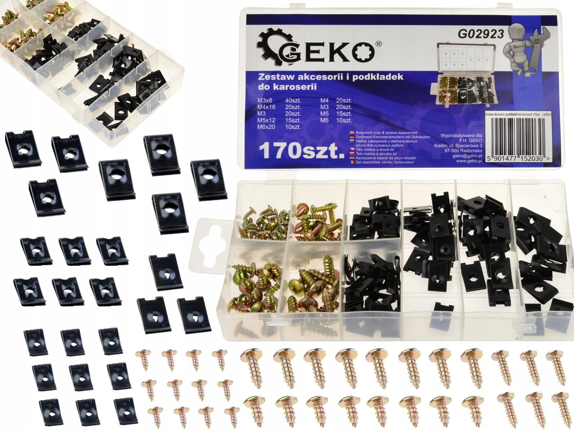 ZESTAW PODKŁADEK I WKRĘTÓW DO KAROSERII 170 SZT