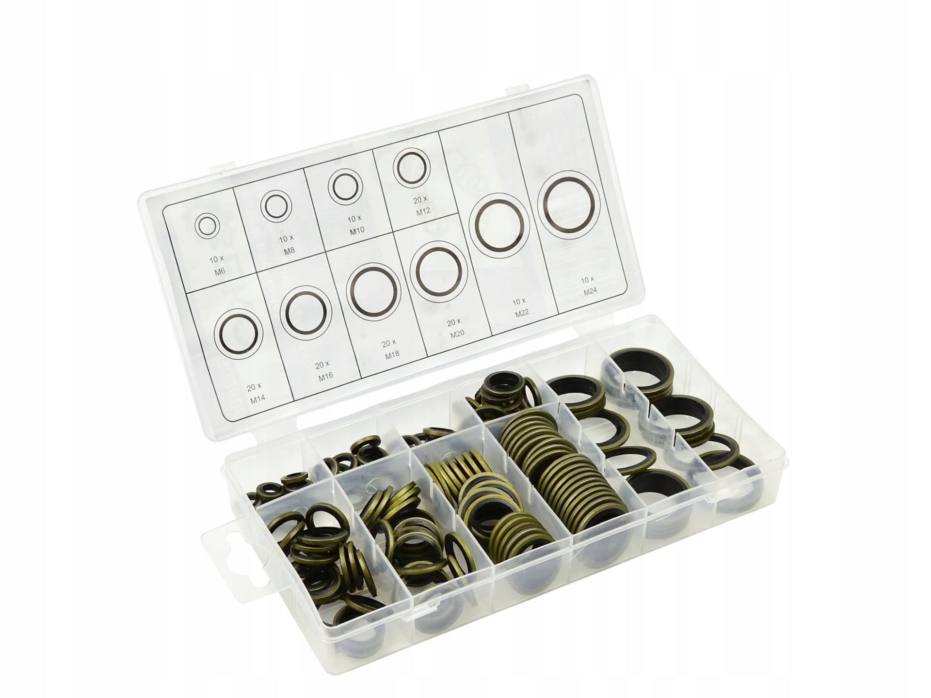 ZESTAW PODKŁADEK METALOWO GUMOWYCH PODKŁADKI METAL GUMA M6-M24 150 ELEMENT