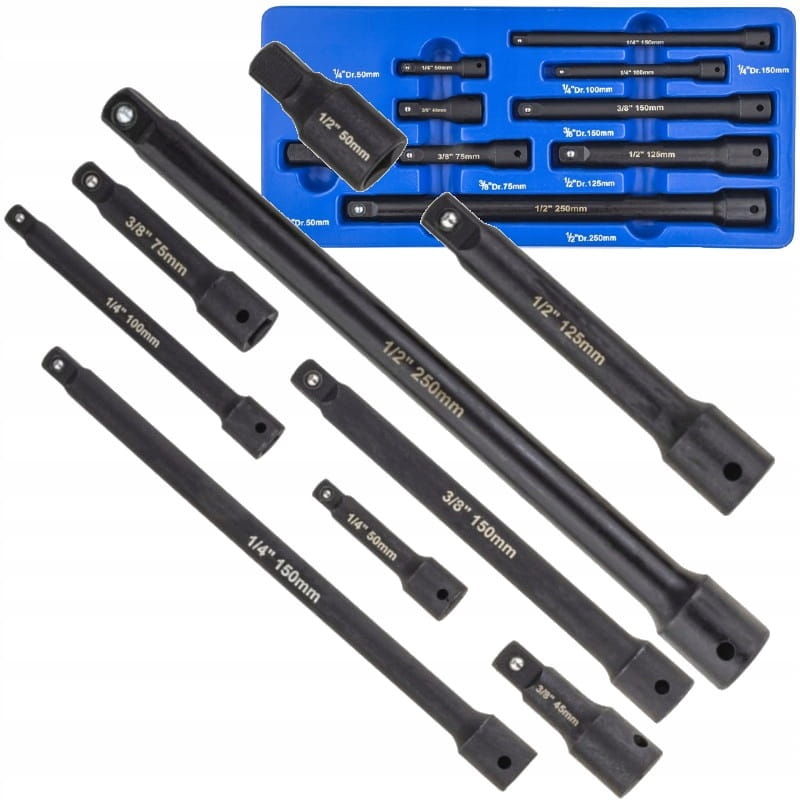 ZESTAW PRZEDŁUŻKI UDAROWE 1/4" 3/8" 1/2" 9 SZT. W ZESTAWIE PRZEDŁUŻEK 9 EL.