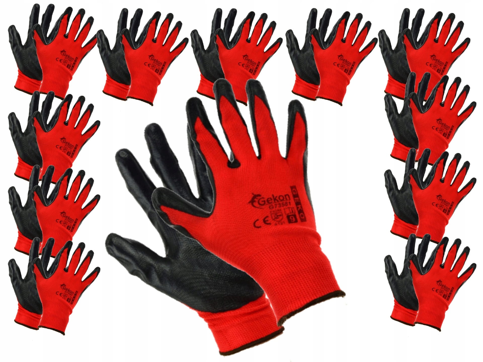 ZESTAW RĘKAWICE RĘKAWICZKI ROBOCZE OCHRONNE 12 PAR - XL POWLEKANE NITRYLEM