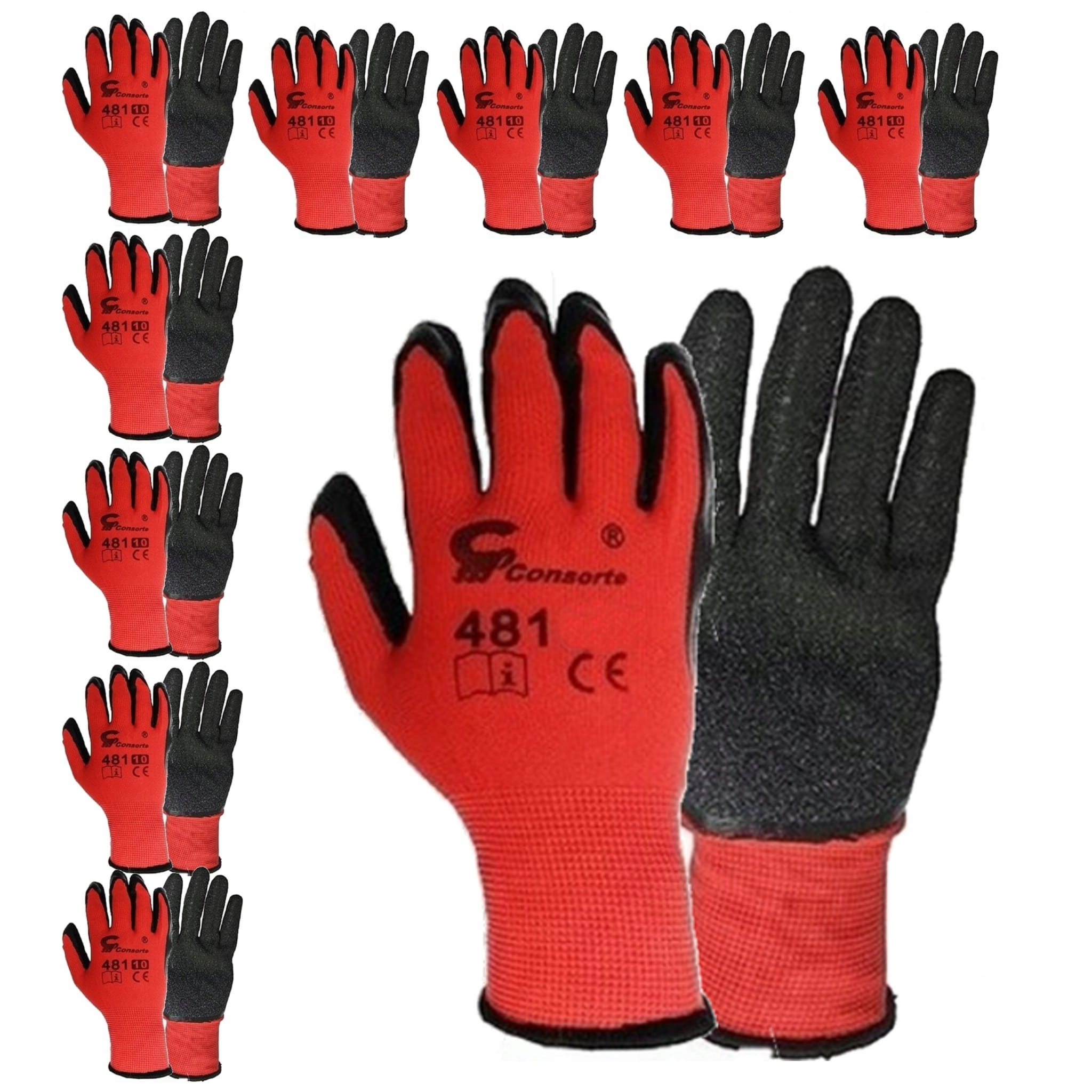 ZESTAW RĘKAWICE RĘKAWICZKI ROBOCZE OCHRONNE LATEX 12 PAR - XL POWLEKANE