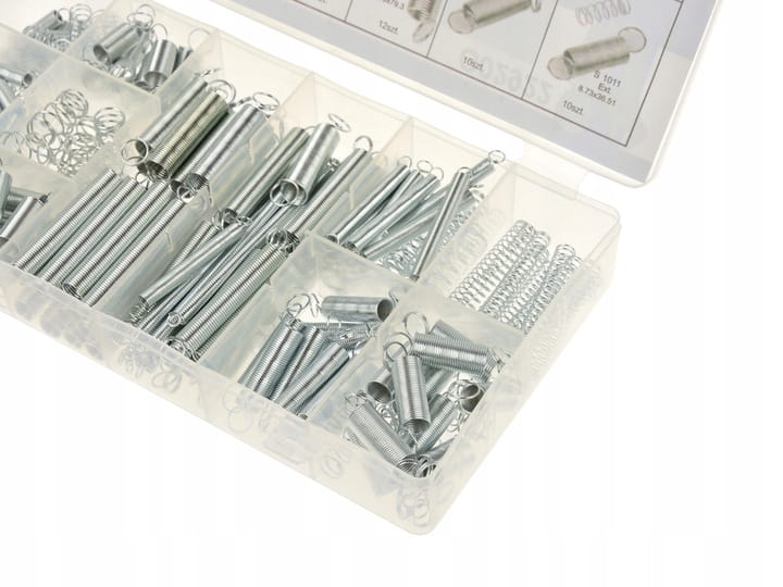 ZESTAW SPRĘŻYNEK 200szt. ŚCIĄGAJĄCE I ROZCIĄGAJĄCE W SEGREGATORZE