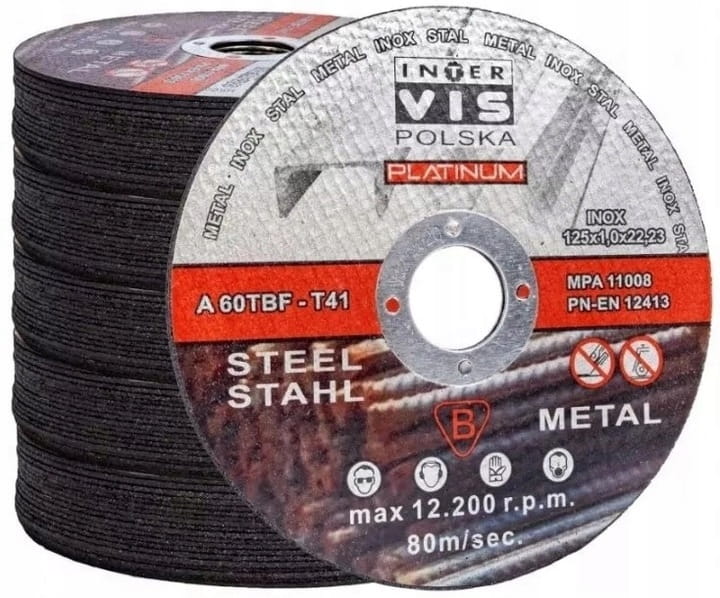 ZESTAW TARCZE DO CIĘCIA METALU STALI INOX INTER VIS 125X1X22,2MM 25szt.