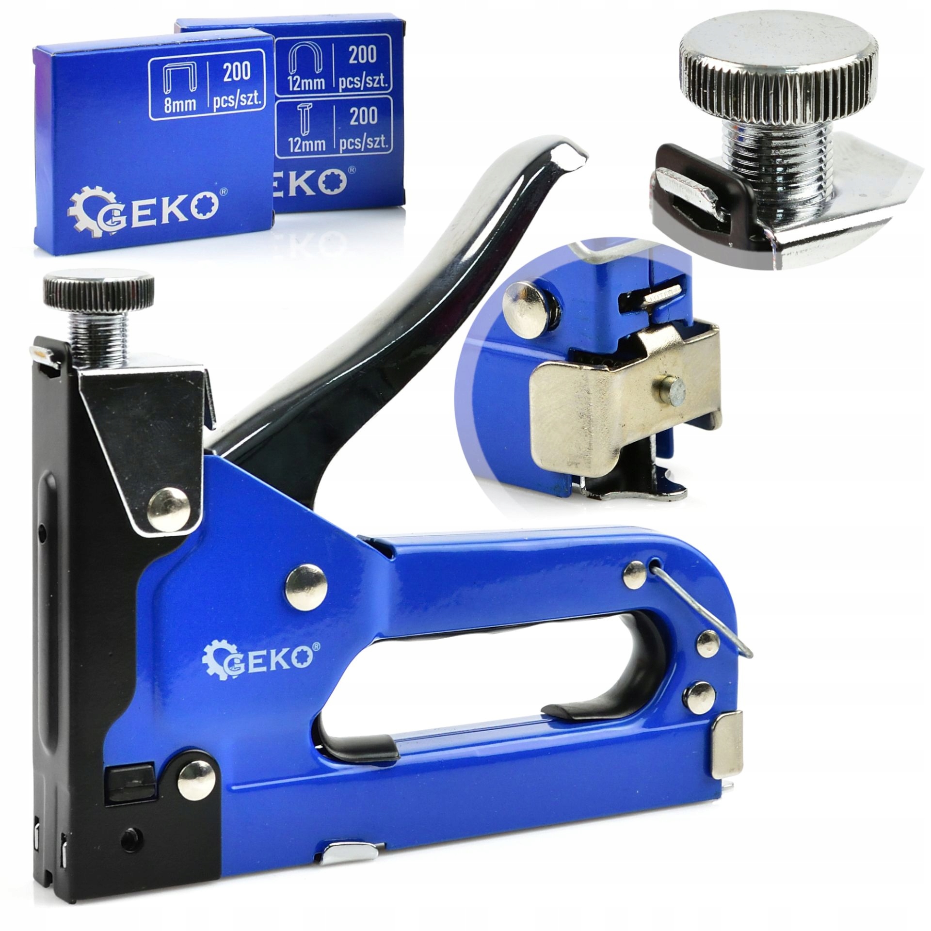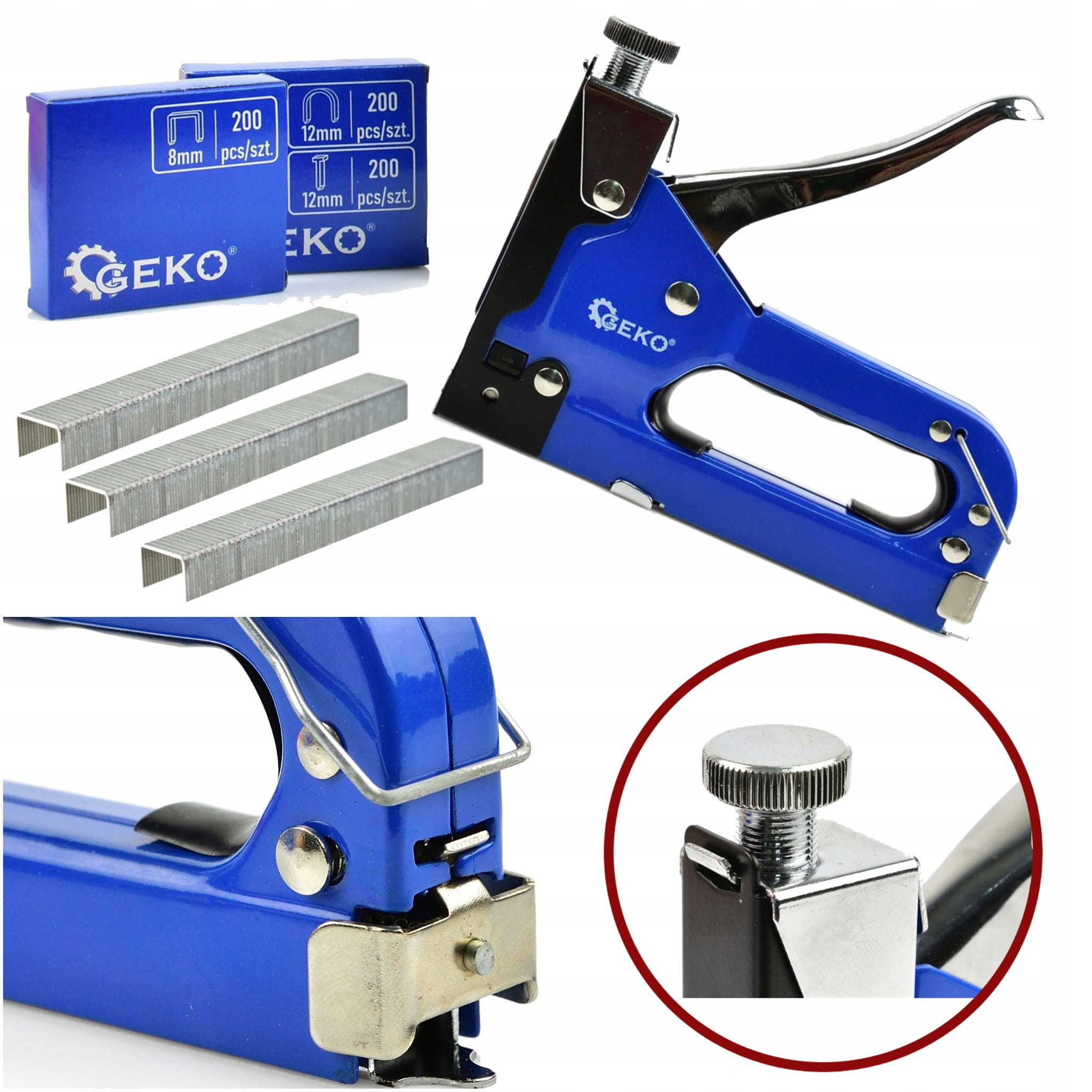 - Ergonomia - prosta obsługa i regulowana siła wbijania.