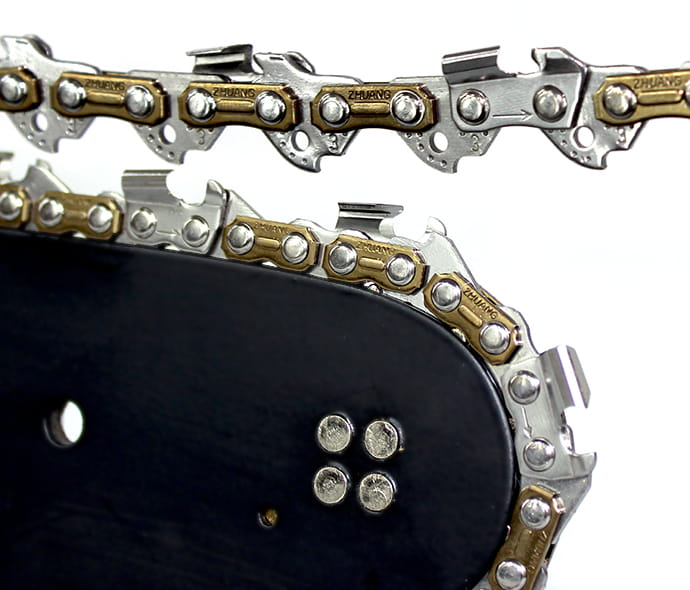 Łańcuchy posiada specjalną, odporną na ścieranie powłokę zapewniającą efektywne cięcie nawet w trudnych warunkach.Powierzchnie tnące zębów wykonano z twardych stopów metali i dzięki temu pozostają one dłużej ostre bez dodatkowego ostrzenia w porównaniu z innymi łańcuchami tnącymi. Drobne kanaliki olejowe w ogniwach prowadzących pobierają olej i przekazują go na przeguby piły łańcuchowej. W tych miejscach umieszczono także dodatkowy rezerwuar oleju co zapewnia lepsze smarowanie i zwiększa żywotność piły łańcuchowej.